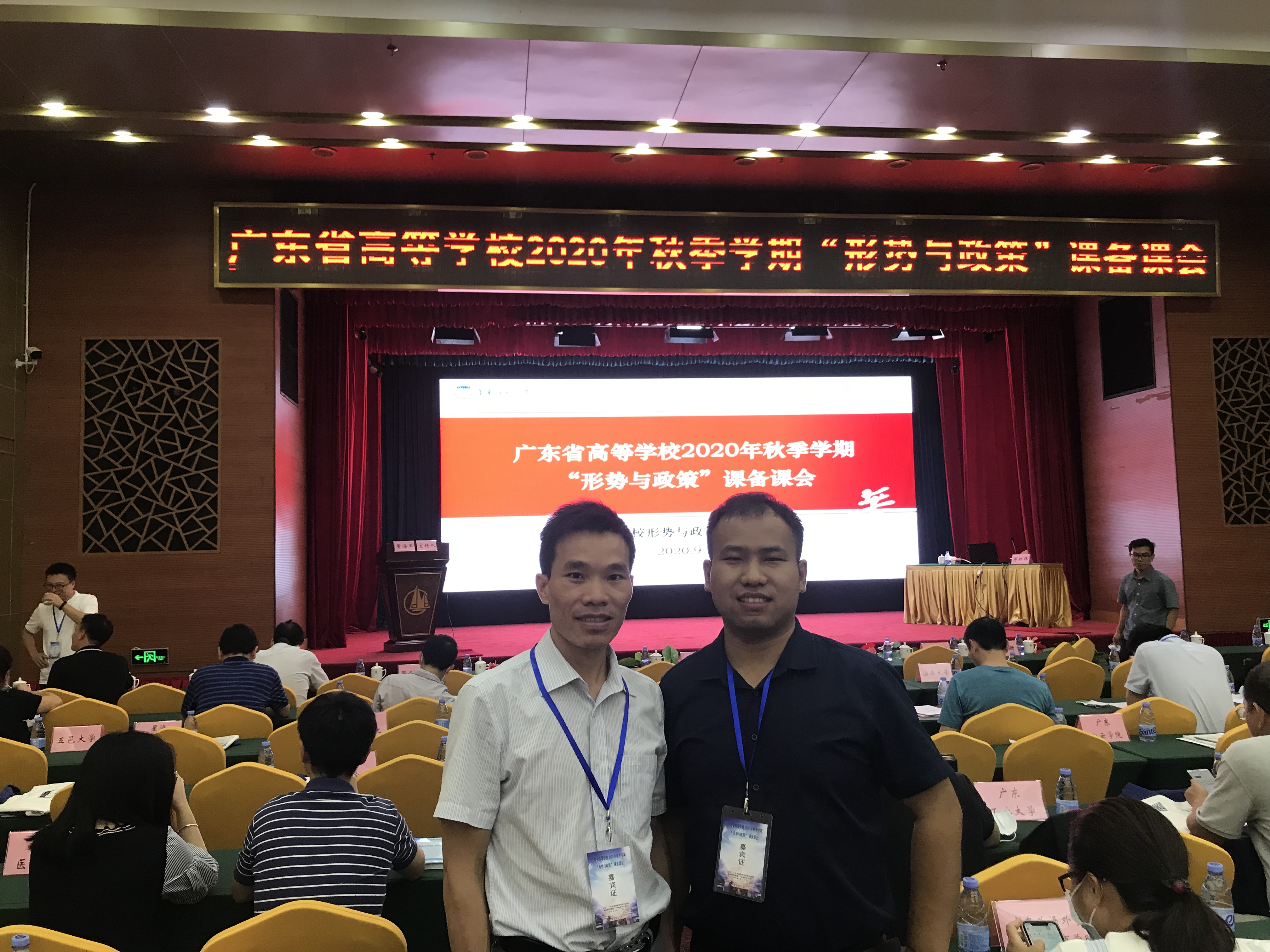 2020年9月20日上午8点30分,广东省高等学校2020年秋季学期“形势与政策”课备课会在广州市东山宾馆会议中心举行,本次备课会由广东省高校形势与政策教学研究基地华南师范大学suncitygroup太阳新城统一筹划和安排。suncitygroup太阳新城委派形势与政策课负责人蒙裕老师和教师代表陈新老师参加本次会议。