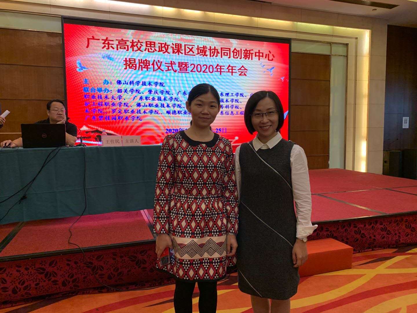 图为两位老师在会议现场合影