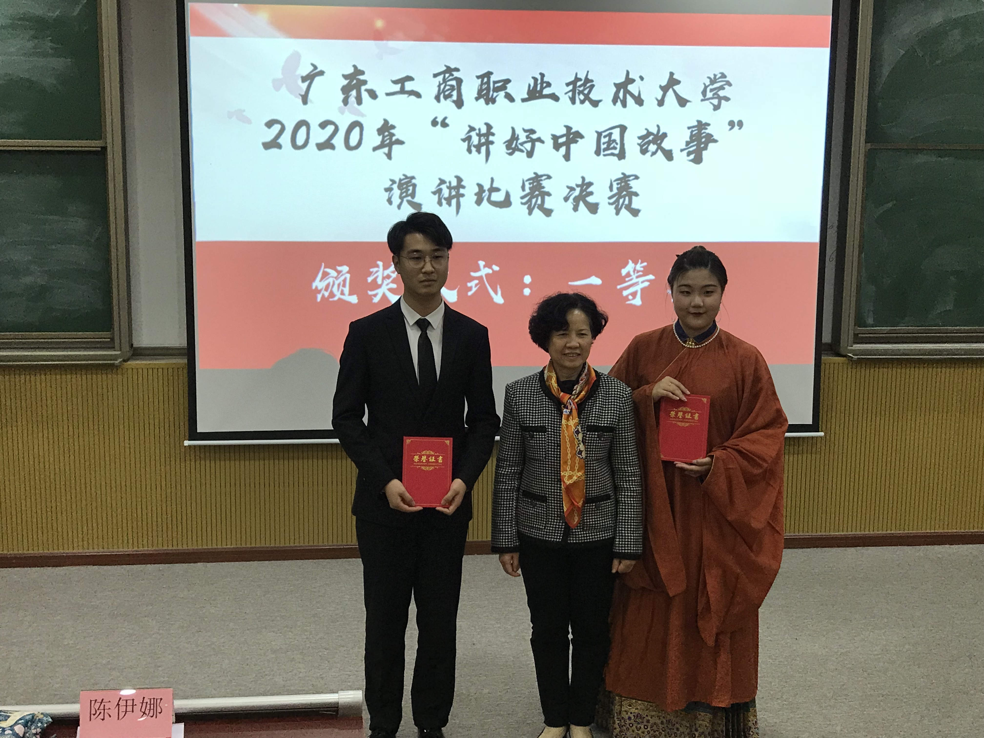 陈伊娜副董事长为一等奖同学颁奖