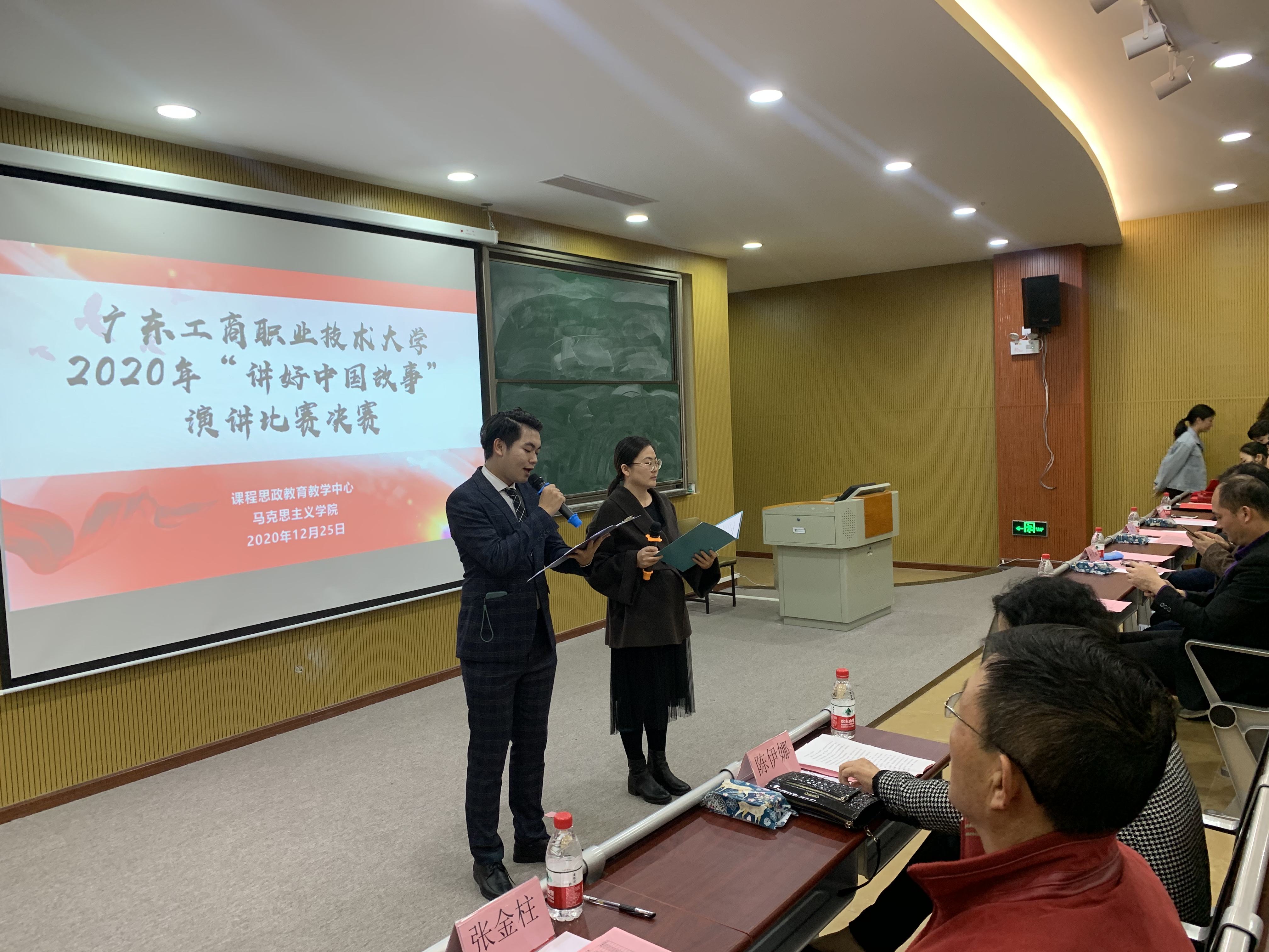 12月25日晚,博学楼113室灯火通明,座无虚席,由suncitygroup太阳新城老员工职业技能竞赛工作委员会主办、suncitygroup太阳新城课程思政公司产品中心和suncitygroup太阳新城承办的2020年第一届“讲好中国故事”演讲比赛总决赛在此举行。