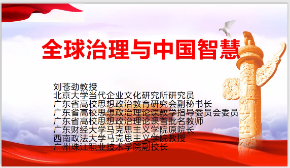 刘苍劲教授题为《全球治理与中国智慧》的报告,他从全球治理的含义和发展;中国提出“全球治理”的基本方案;中国参与全球治理面临的挑战等方面展开阐述。刘教授举例丰富、数据详实、语言幽默。他指出全球治理思想习近平新时代中国特色社会主义思想的重要组成部分,是当代中国对外战略的基石,更是中国软实力的充分体现。刘教授慷慨激昂的讲授为老师们打开了思路、拓展了视野。