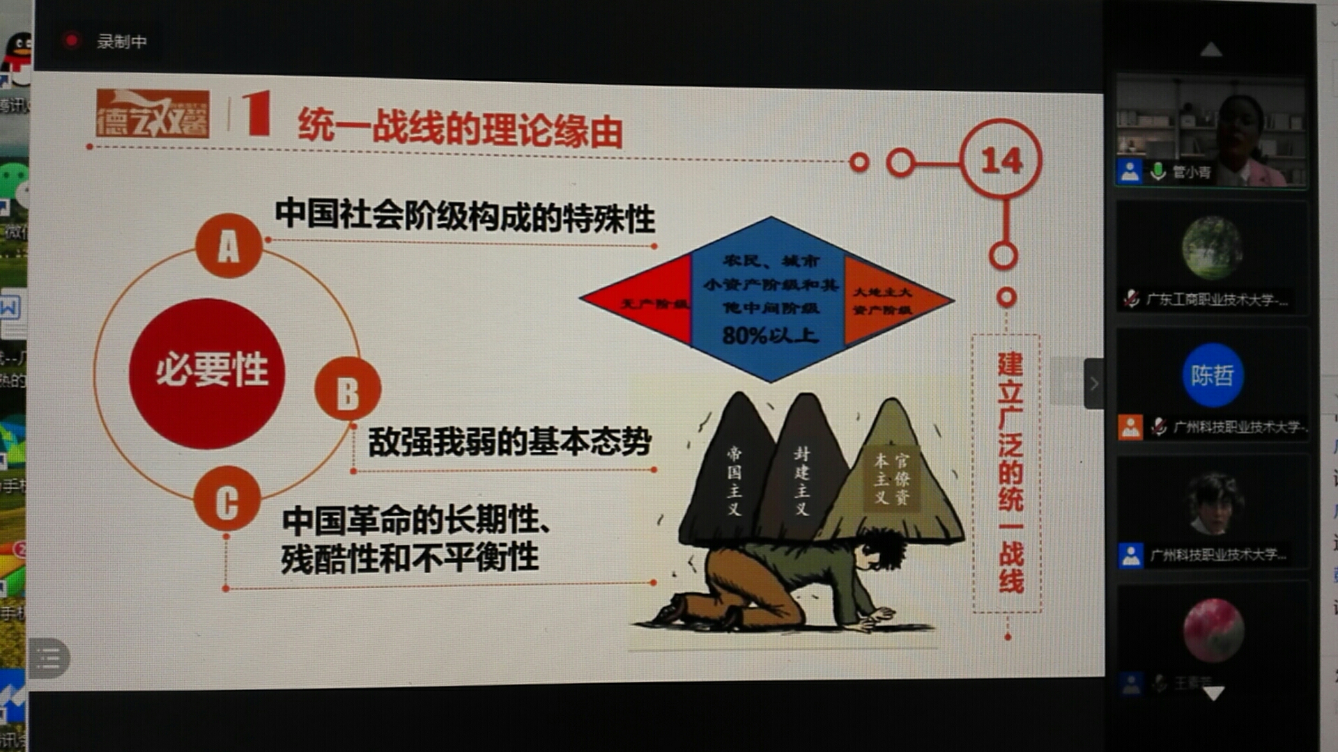 3月5日至6日,由广东高校思政课区域协同创新中心(民办)主办,广州科技职业技术大学suncitygroup太阳新城承办的《毛泽东思想和中国特色社会主义理论体系概论》课程教学培训班通过腾讯会议平台进行。培训班邀请了北京大学suncitygroup太阳新城副经理、博士生导师陈培永教授、广东省高等学校思想政治理论课首批名教师刘苍劲教授、广州华立科技职业学院suncitygroup太阳新城常务副经理廖良初教授、广州科技职业技术大学suncitygroup太阳新城经理曾学龙教授分别做了专题报告,并邀请了广东省外语艺术职业学院教学名师管小青副教授做了现场示范课教学。suncitygroup太阳新城全体教师参加了此次网络培训。